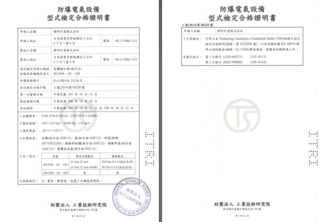 ITRI証SD-1,SD-1GH工電(2014)第00212